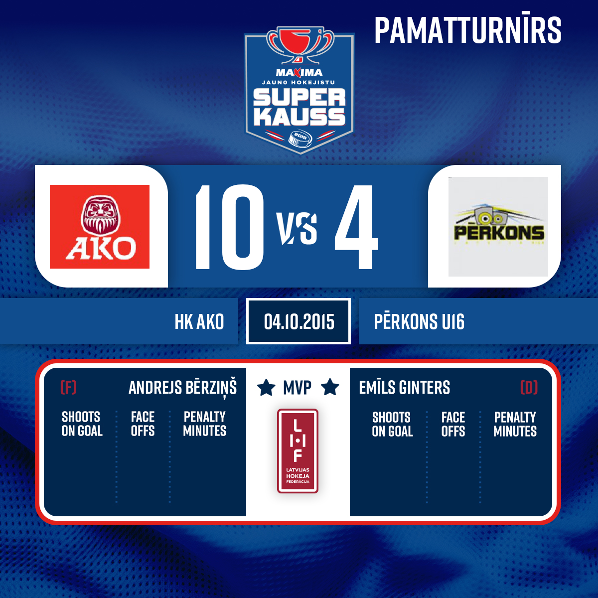 - 60:00P3Spēles labākie spēlētāji: AKO/Ogre #11 Andrejs Bērziņš; Pērkons #21 Emīls Ginters.