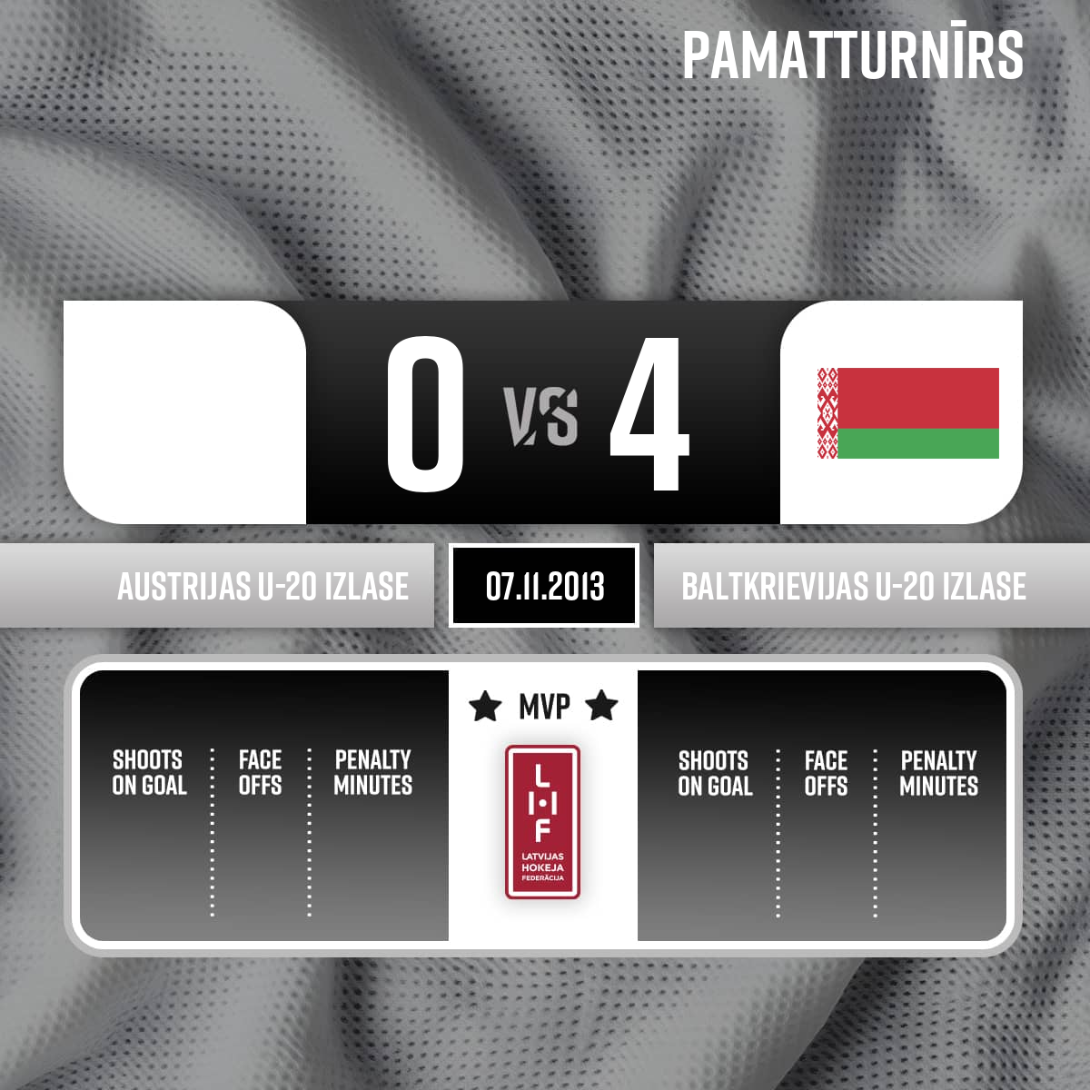 Powerplay goal#22 Yevgeni KUNTSEVICHAssist: #13 Roman DOSTANKO+1 vairākumā - 33:15P2Penalty - 2 minutesHolding an opponent, #12 Alexander CIJAN