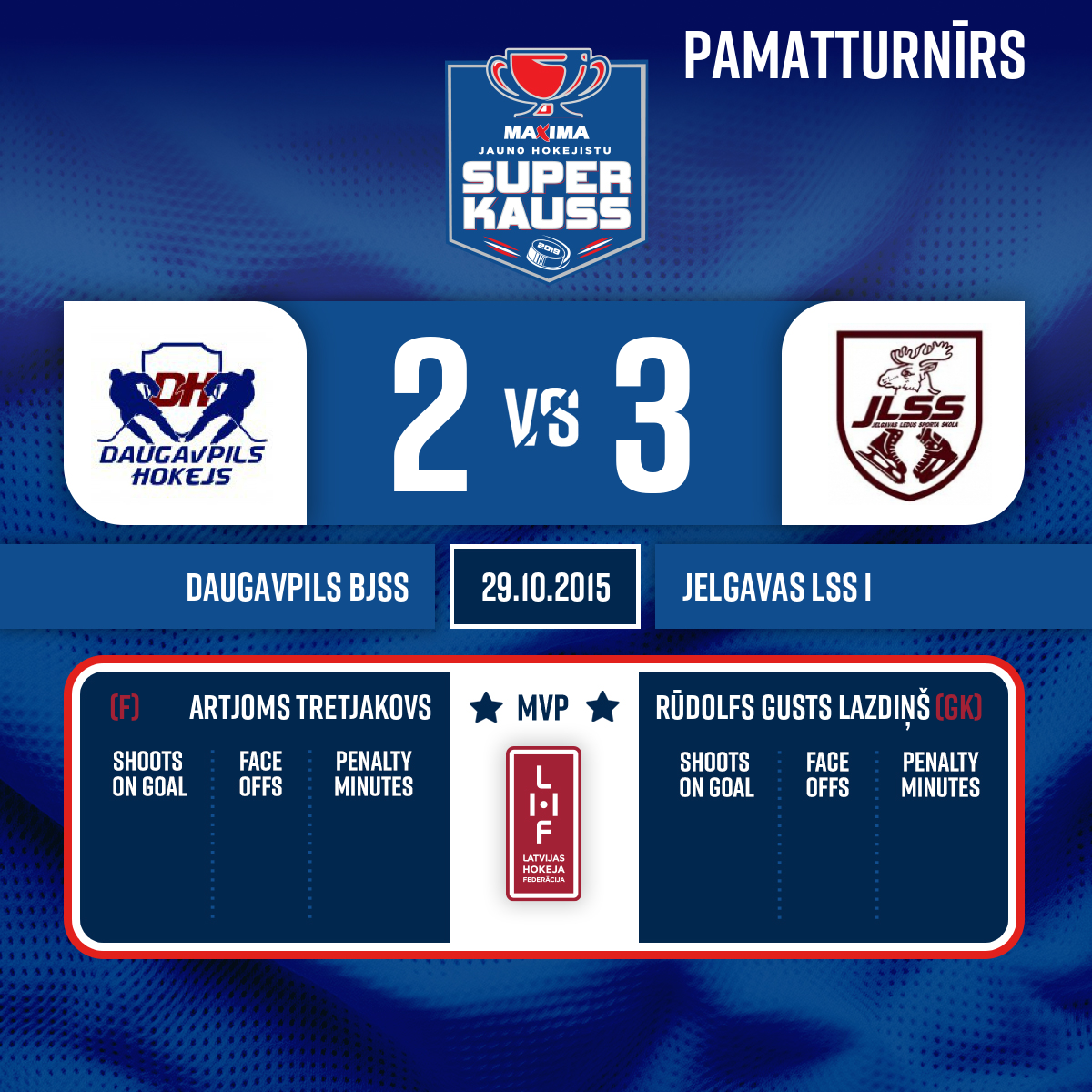 Spēles labākie spēlētāji: Daugavpils BJSS - #17 Artjoms Tretjakovs, Jelgavas LSS- #1 Rūdolfs Gusts Lazdiņš.
