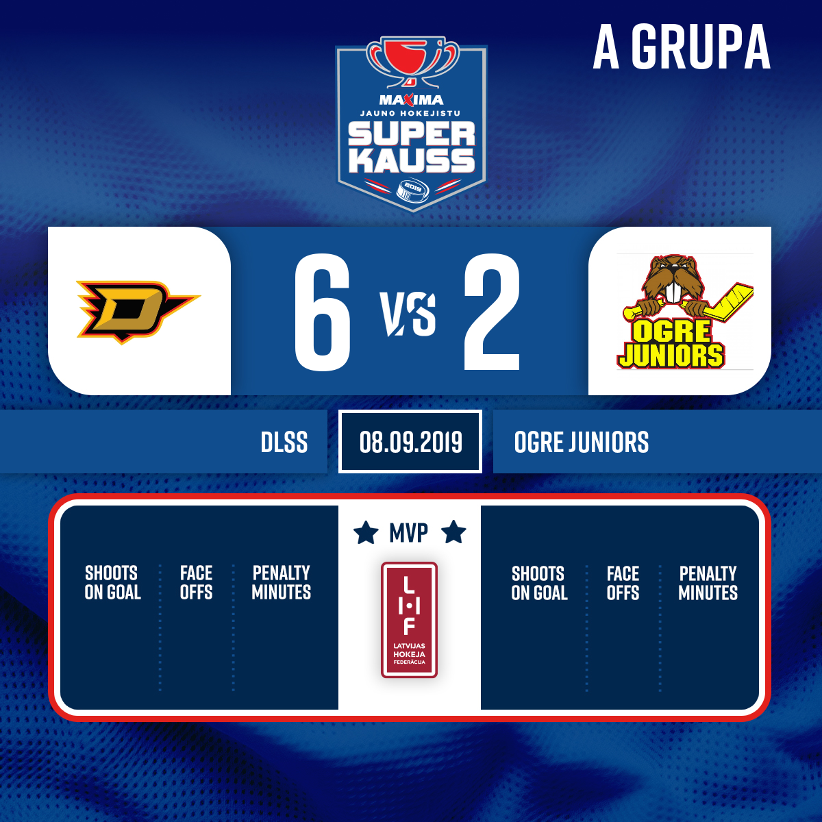 Goal#8 Pāvels ŅIKITINSAssists: #34 Viktors KURBAKA, #9 Edgars BARKOVSKIS - 40:00 Start of the 3rd period