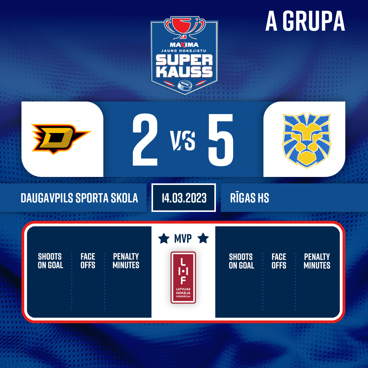 Goal#12 Edgars ABLAŽEVIČSAssists: #17 Natans SAMUILOVS, #8 Maksims PĻEHANOVS - 00:00P1