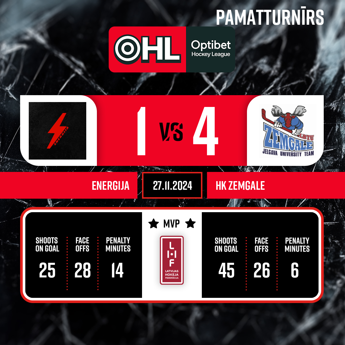 Goal#12 Toms MOTSAssists: #51 Aleksandrs ZAPRIVODA, #72 Kevins STRĀDNIEKS - 22:00P2Energija komanda spēlē pilnā sastāvā
