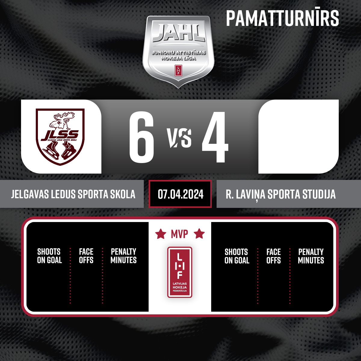Goal#8 Emīls GRIĶISAssist: #17 Aksels HEIZE - 00:00P1Spēles galvenais tiesnesis - Elvijs Trankalis. Spēles līnijtiesneši - Uvis Bindulis un Renē Fursa.