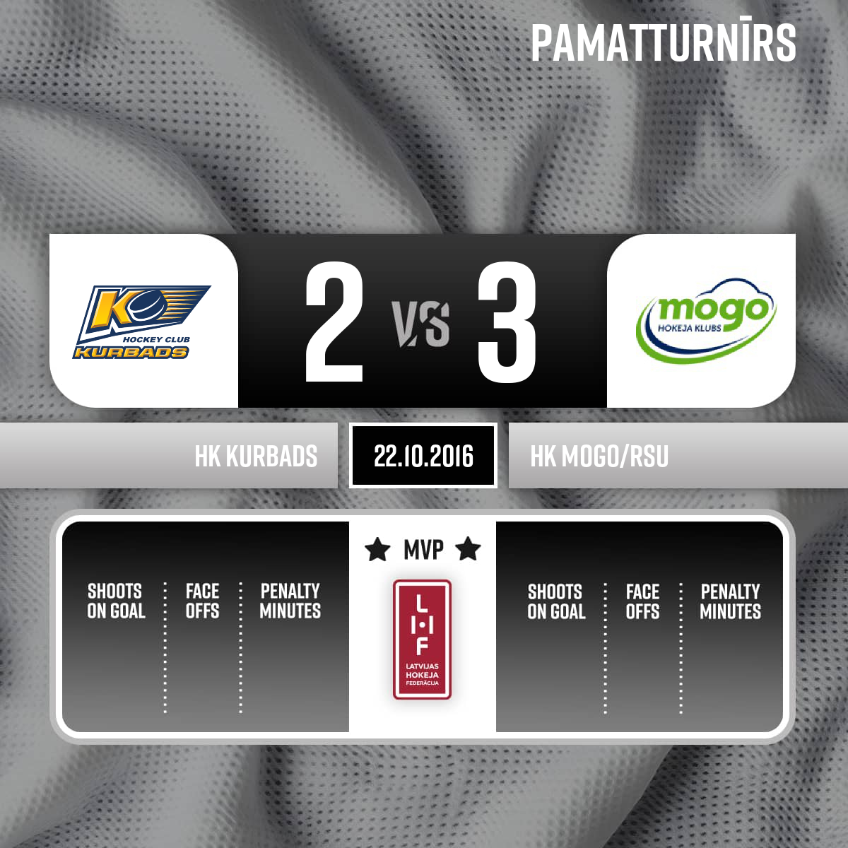 - 60:00P3Spēles labākie spēlētāji; HK Kurbads #25 Mārtiņš Raitums, HK MOGO #22 Andris Siksnis