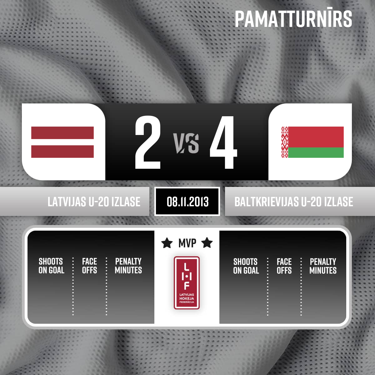 Powerplay goal (+2)#3 Anton KIRECHKOAssists: #15 Artsiom YATSKEVICH, #10 Alexandr KARAKULKOVairākumā +2 On ice LAT 30 3 5 14, BLR 1 3 8 10 15 22 - 24:43P2