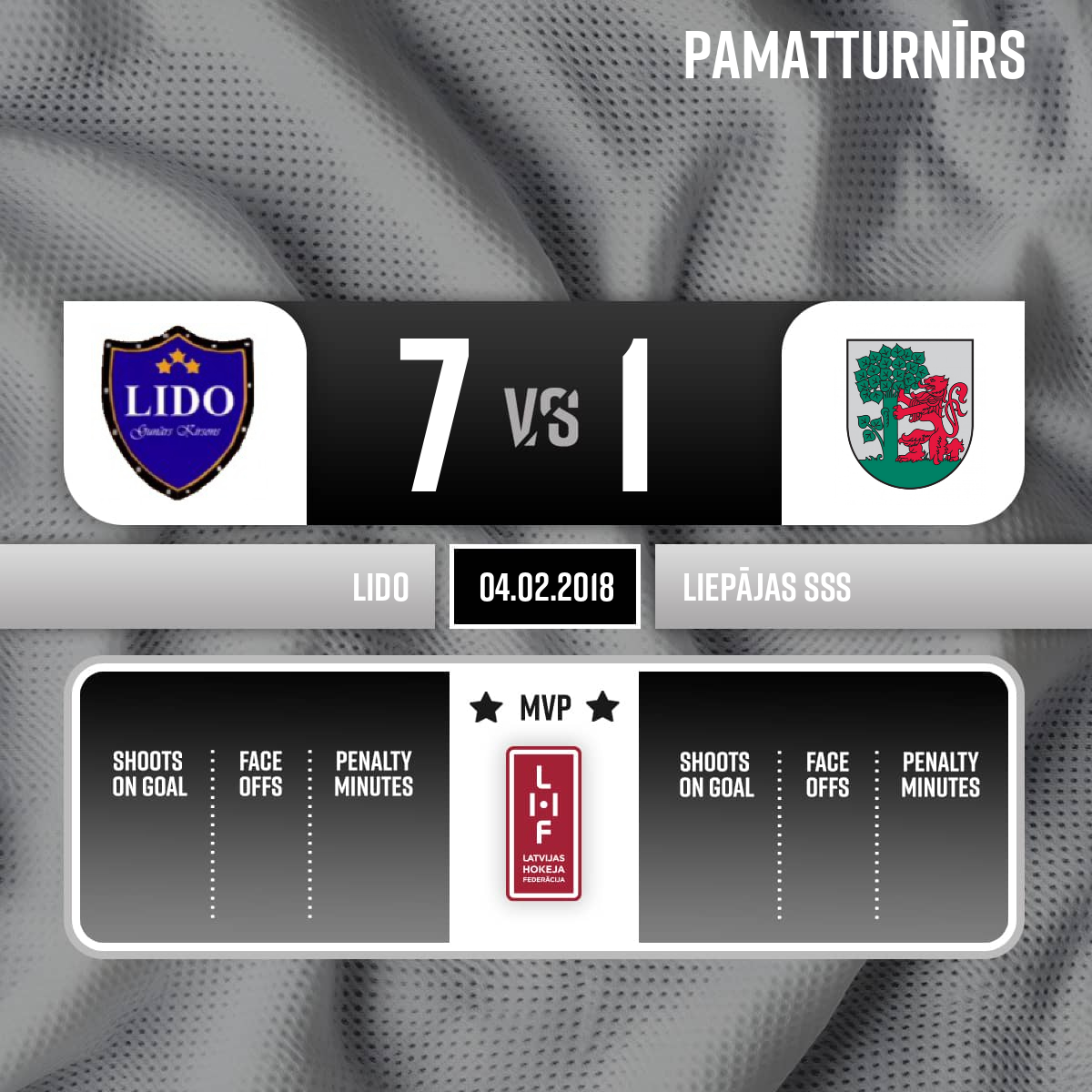 Goal#6 Everts OZOLSAssists: #28 Gustavs MILLERS, #88 Kristaps SKRASTIŅŠ - 00:00P1Spēles tiesneši: Galvenais tiesnesis - A.Borisovs, Līnijtiesneši - S.Čamane, A.Ozoliņš