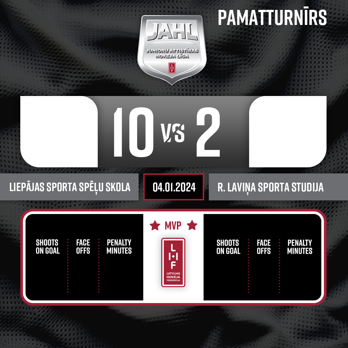 #11 Roberts KRIEVIŅŠAssists: #77 Miks Krišs RUNGOVSKIS#88 Ričards Rihards FOMINS4:124:10
