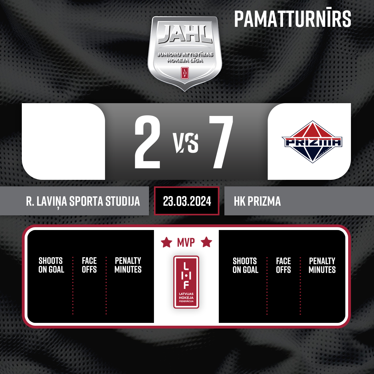 Goalkeeper in#1 Jānis SIDAŠS - 00:00P1Goalkeeper in#31 Roberts VĪTOLS