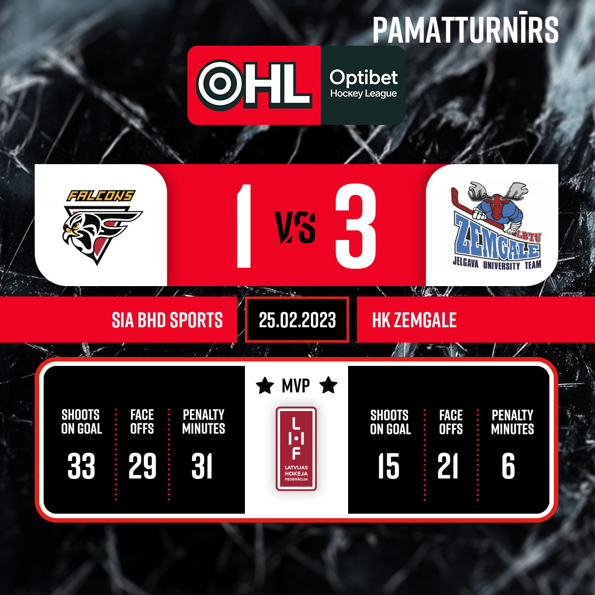 Penalty - 25 minutesMatch penalty, #17 Elviss ŽELUBOVSKISMainīts saskaņā ar lēmumu nr.SDTK-03/2023 - 28:15P2
