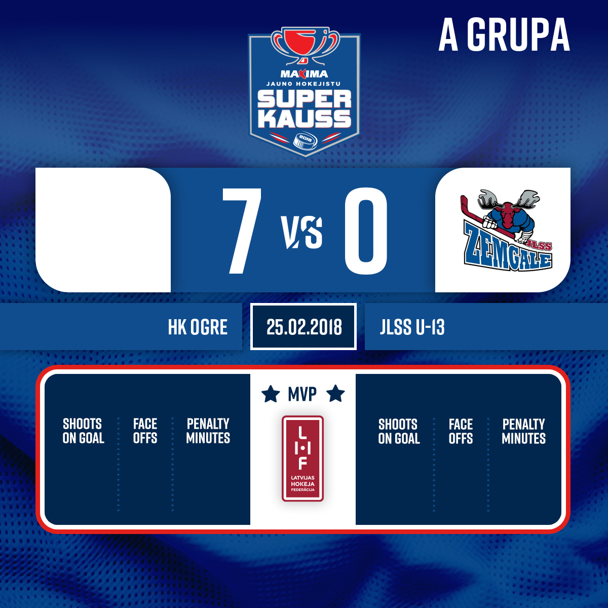 Goal#8 Dāniels DZEDULISAssist: #26 Edvards Rauls LAGANOVSKIS - 33:01P3Penalty - 1 minutesHooking, #10 Haralds MATSKINS