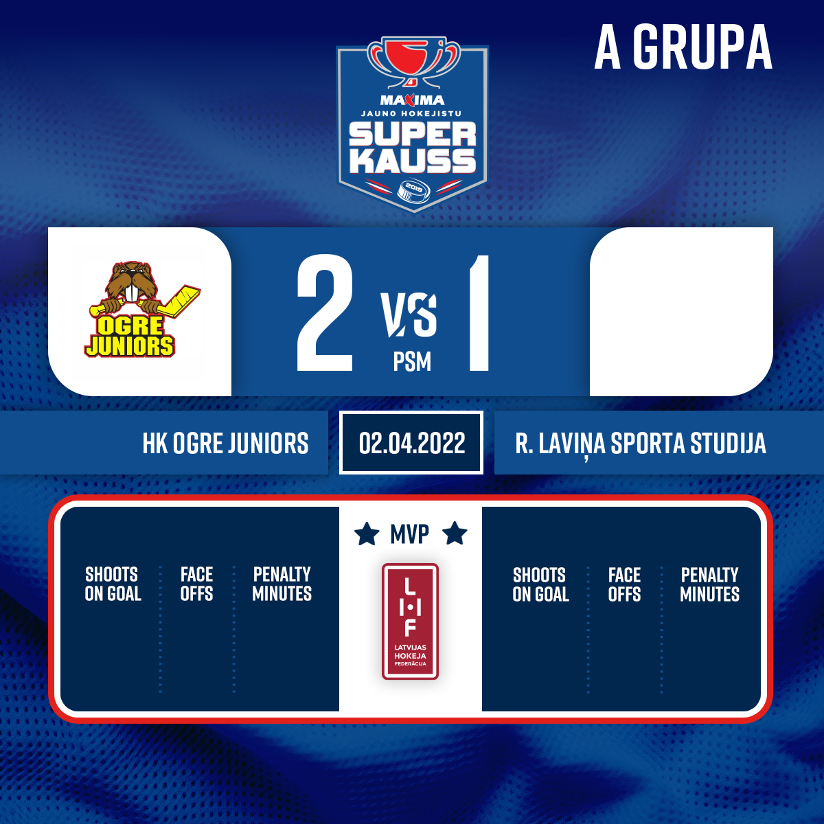 Penalty - 2 minutesTripping, #77 Valdemārs PITKĒVIČS - 05:10P1Penalty - 2 minutesCross-checking, #13 Rihards GRUNDEJS