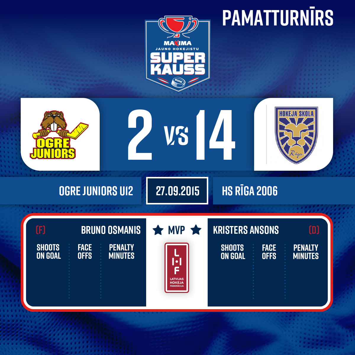 Spēles labākie spēlētāji: Ogre juniors #71 Bruno Osmanis Rīga 2006 #71 Kristers Ansons