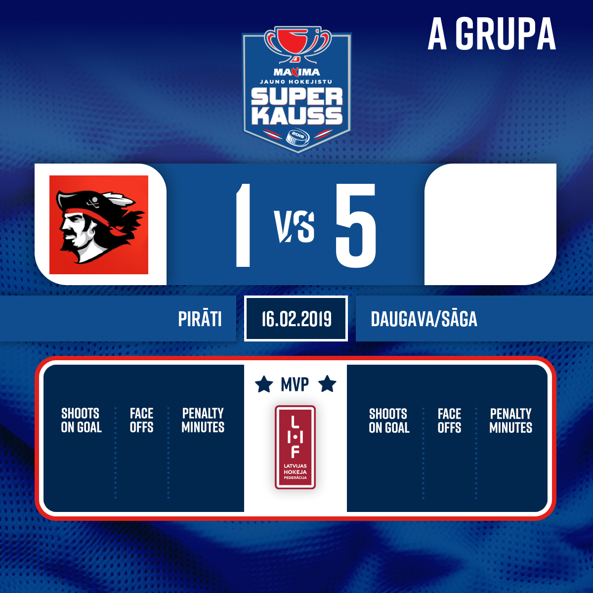 Goal#10 Vladislav KOLOTVINAssist: #11 Roberts VORONA - 00:00P1Goalkeeper in#1 Kristiāna APSĪTE
