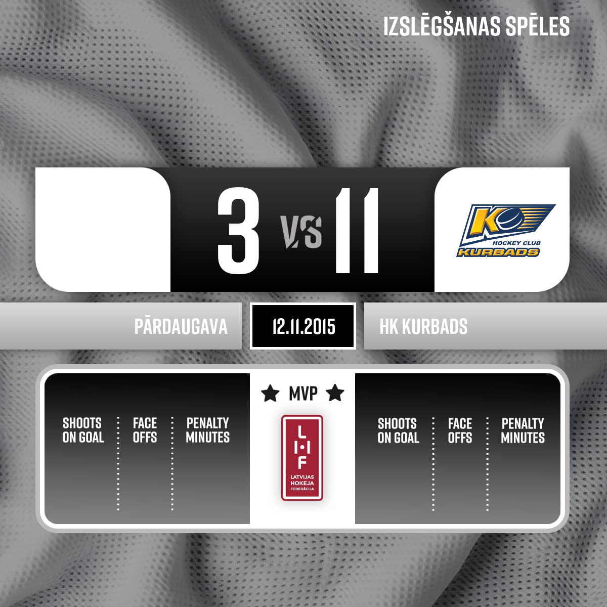 - 60:00P3Labākie spēlētāji; HK Prizma/Pārdaugava- Toms Broks #33 un HK Kurbads- Aleksandrs Macijevskis #17