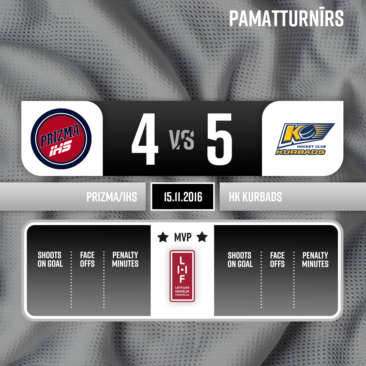 - 60:00P3Spēles labākie spēlētāji: HK Prizma #61 - Krists Apsītis HK Kurbads #18 - Toms Hartmanis