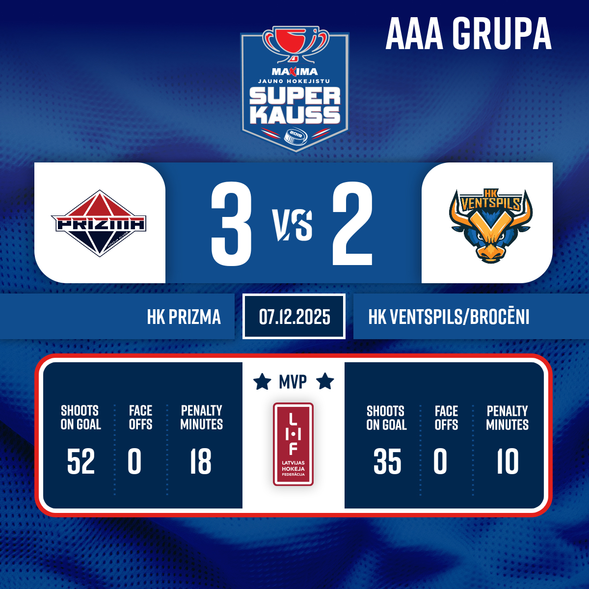 Assists: #98 Miķelis MASLOVSKIS#88 Dominiks KONTANTS3:2PP1, 51:55