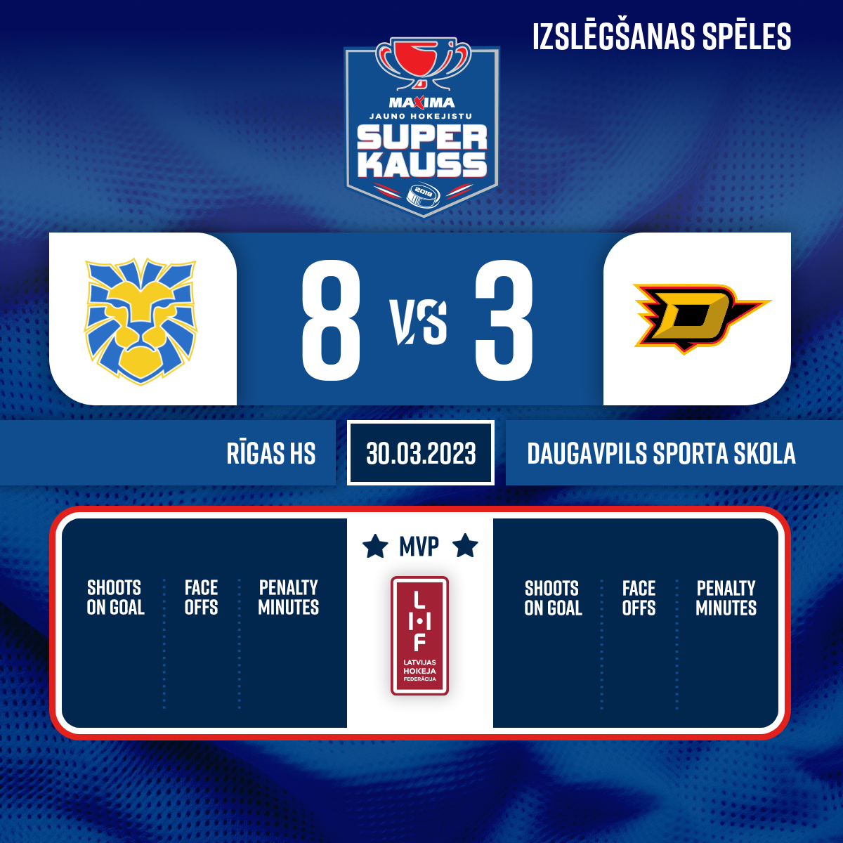 Goal#16 Dāvids DAŅILOVSAssists: #6 Andrejs LOSĀNS, #31 Nikita SEMJONOVS - 54:41P3