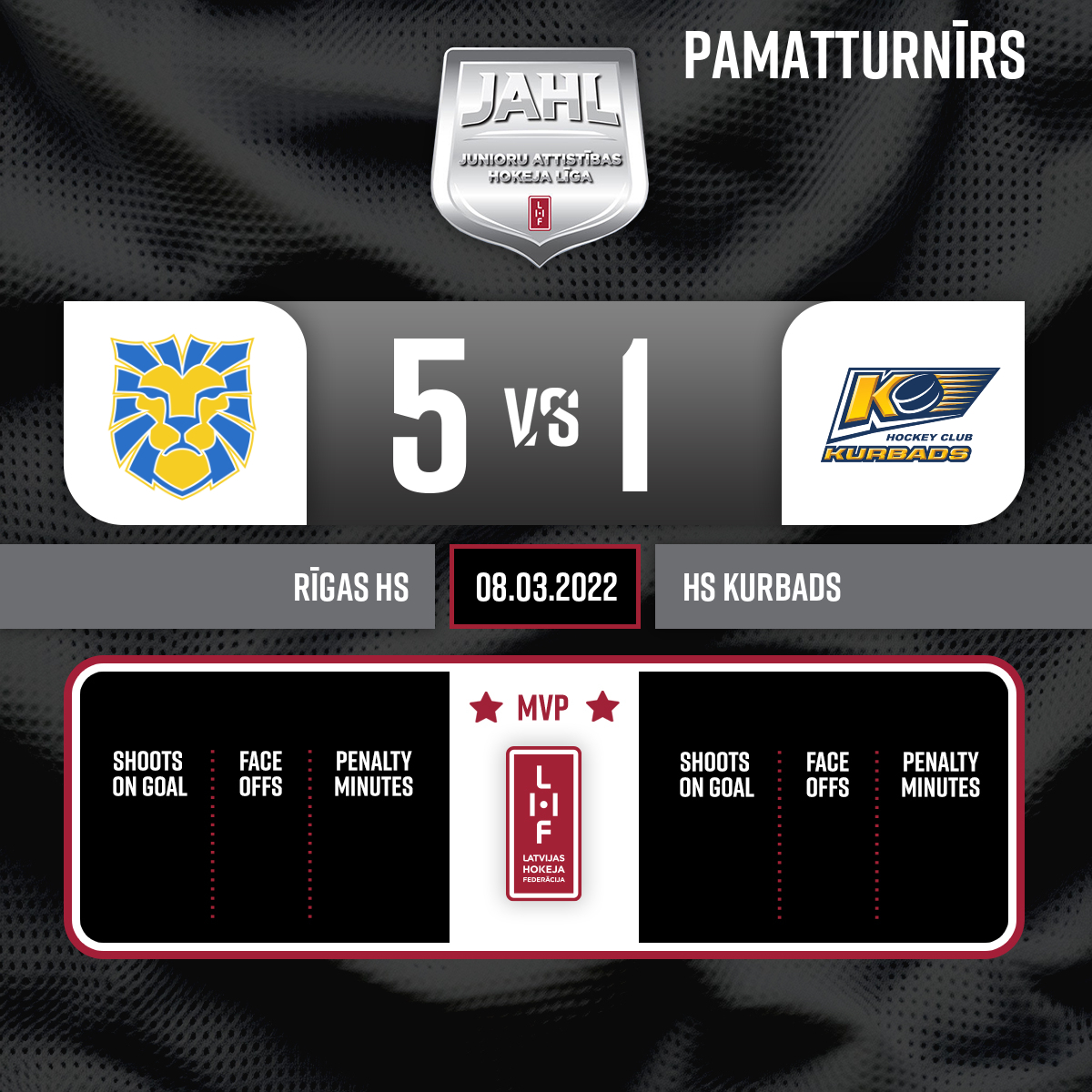 Goal#19 Matīss BĪRIŅŠAssist: #13 Roberts BINDE - 00:00P1Spēles tiesneši: Galvenie tiesneši – Andris Ansons un Andrejs Jakovļevs Līnijtiesneši – Ritvars Roberts Rudzītis un Vladislavs Odiņš Spēles inspektors - Arnis Bērziņš