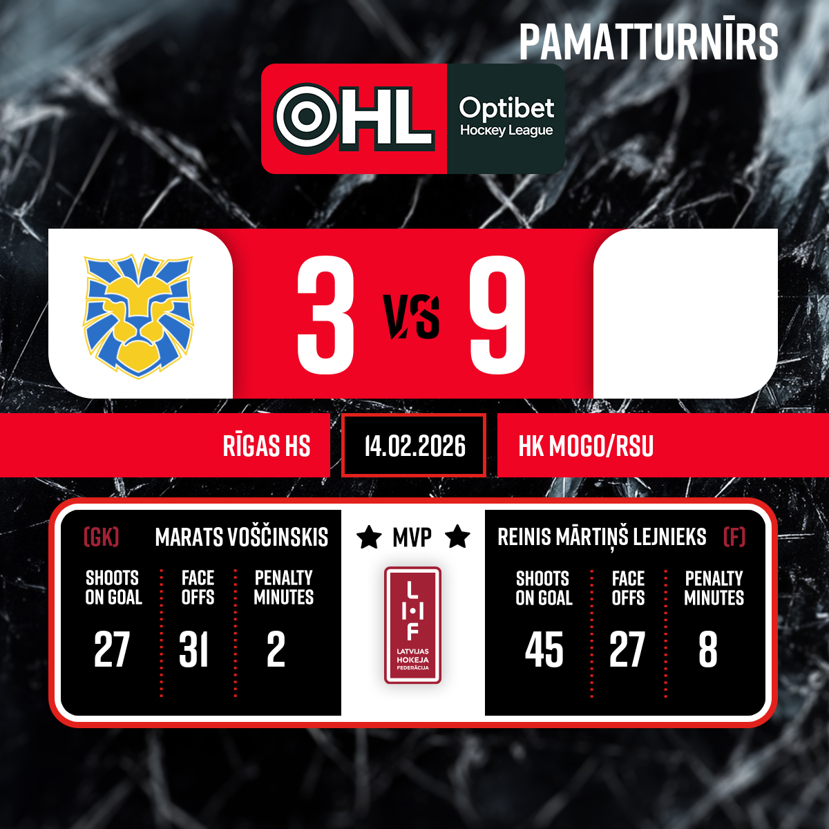 Assists: #87 Gints MEIJA#17 Elviss ŽELUBOVSKIS1:5PP1, 39:59