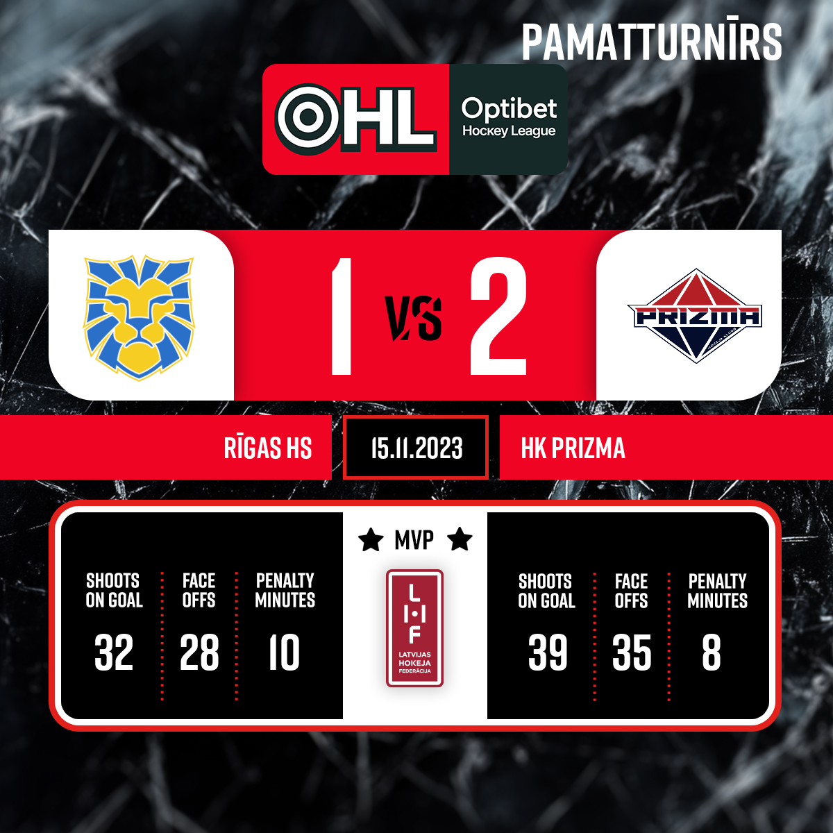 - 60:00P3Spēles labākie spēlētāji: HS RĪGA - #32 Linards FELDBERGS PRIZMA - #20 Jānis SIDAŠS