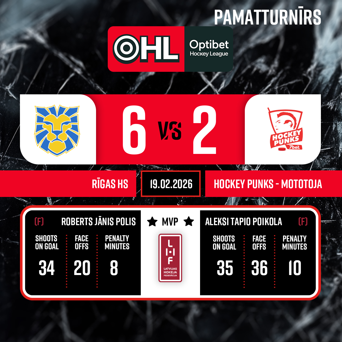 Goal#10 Roberts Jānis POLISAssists: #25 Gustavs SPĪGULIS, #7 Kristers OBUKS - 00:00P1
