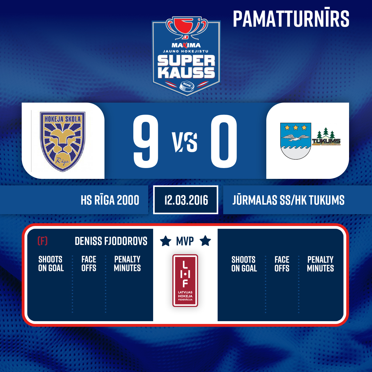 Goal#9 Deniss FJODOROVSAssists: #24 Ričards PURIŅŠ, #3 Ņikita KUPRIJANOVS