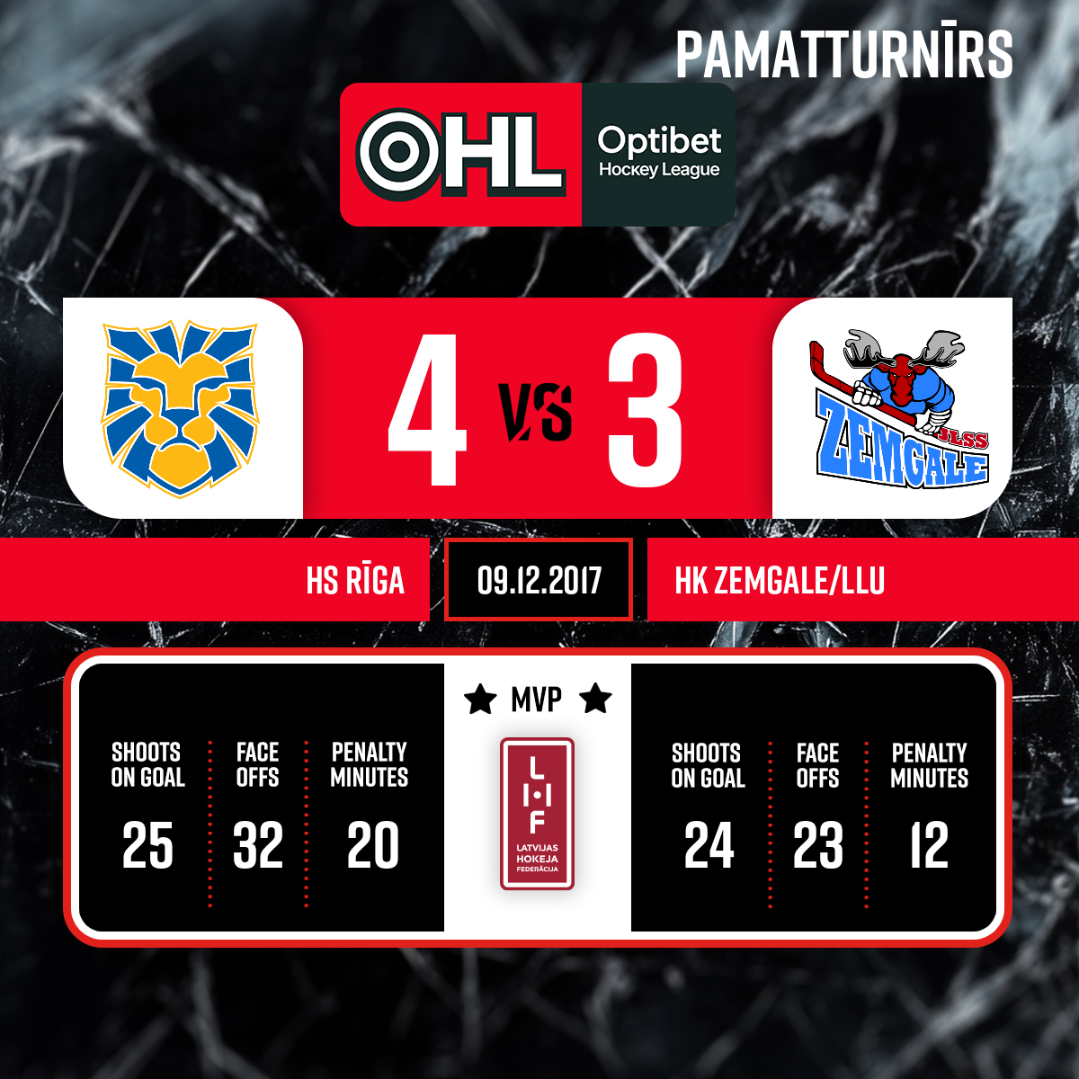Goal#17 Artjoms OGORODŅIKOVSAssists: #77 Olafs APLOKS, #13 Raivis KURNIGINS - 00:00P1Spēles tiesneši: Galvenie tiesneši - Ansons Andris, Juris Laicāns, līnijtiesneši - Zude Dāve, Briedis Ričards. Spēles inspektors: Ostaņiņs Vladimirs