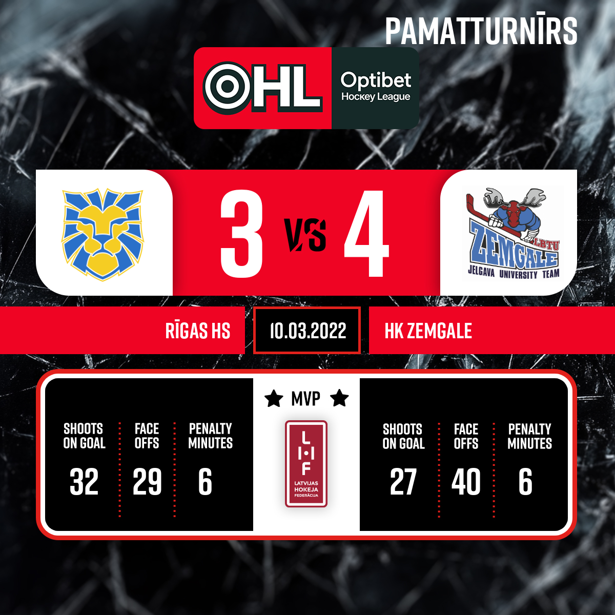 - 60:00P3Spēles labākie spēlētāji: HS Rīga - #8POĻAKOVS Otto Pauls HK Zemgale/LLU- #89 GREKOVS Iļja