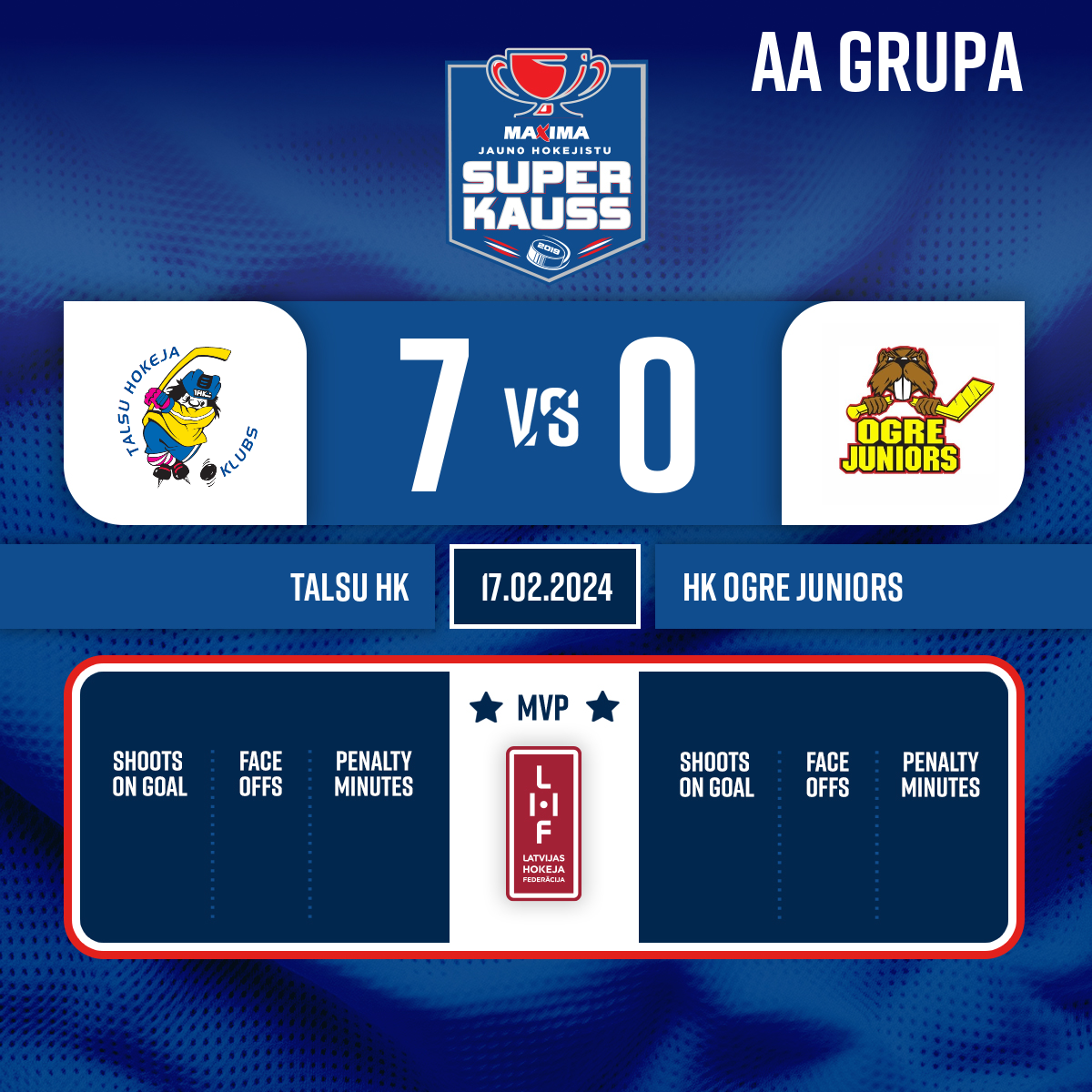 Powerplay goal#15 Krišjānis SKUJAAssists: #16 Emīls NIKLĀVS, #13 Gustavs BURNEVICS - 32:09P3