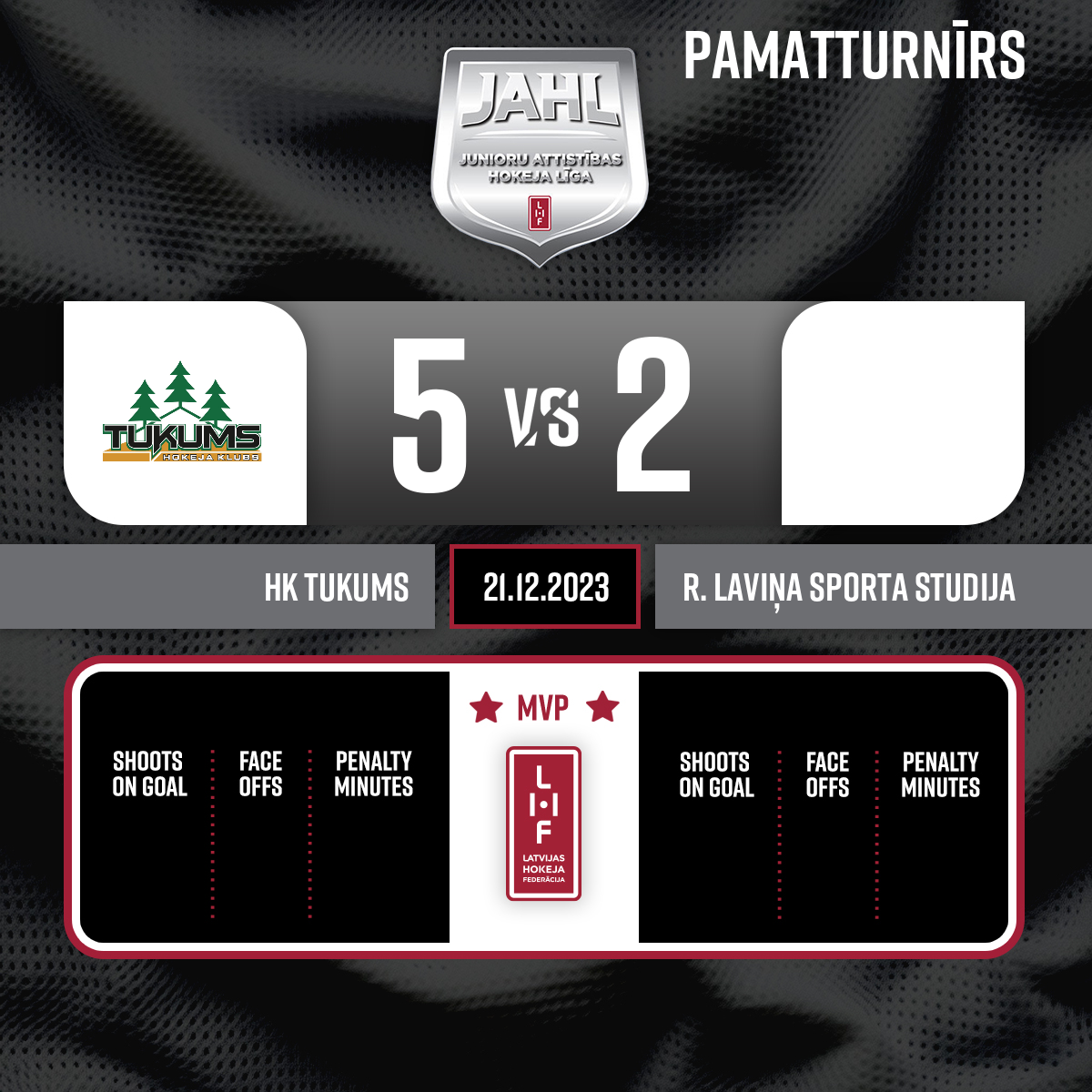Goal#2 Valters ERNSTSONSAssists: #5 Ņikita RJABOŠAPKA, #13 Ilja SUHORUKOVS