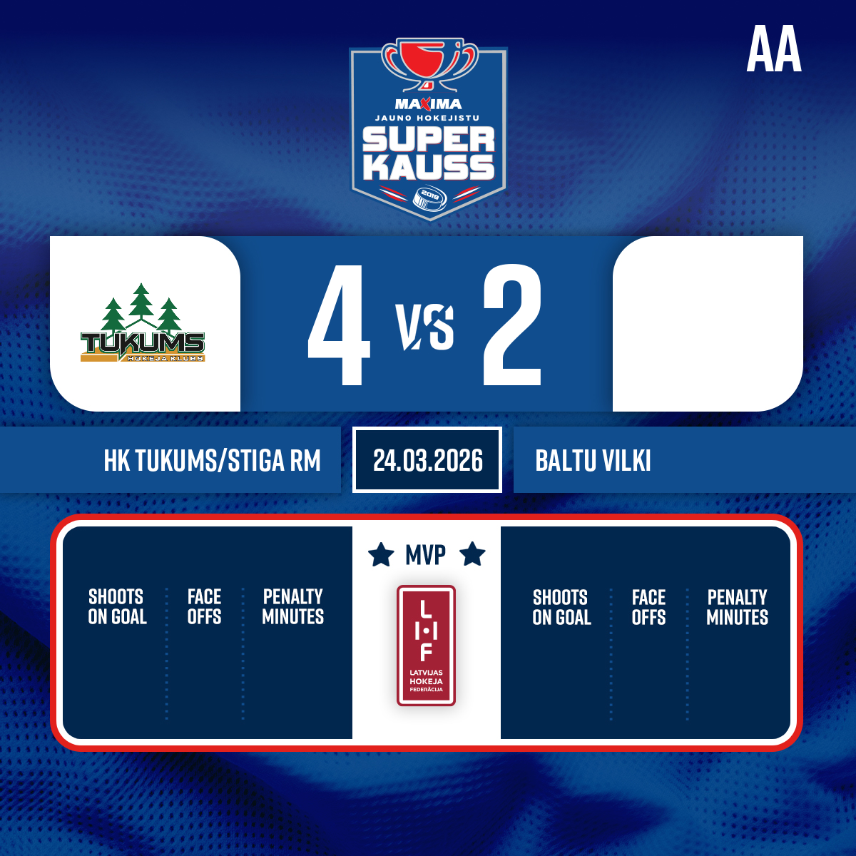 Penalty - 2 minutesOther, #8 Markuss HĪNERS - 30:00 Start of the 3rd period