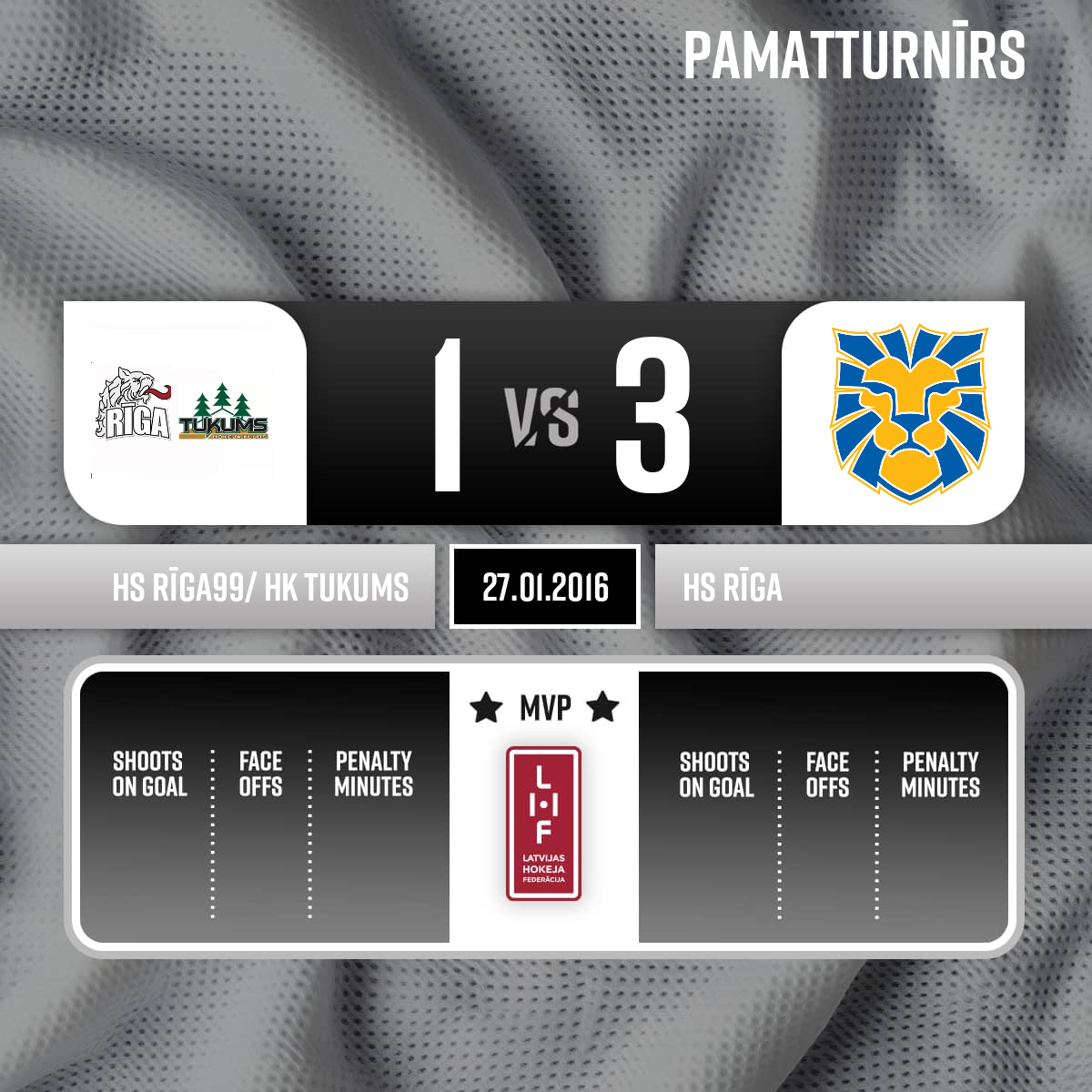 - 60:00P3Labākie spēlētāji: HS Rīga99/ HK Tukums - #13 - Lūkass Sičevs HS Rīga - #35 - Reinis Ruks