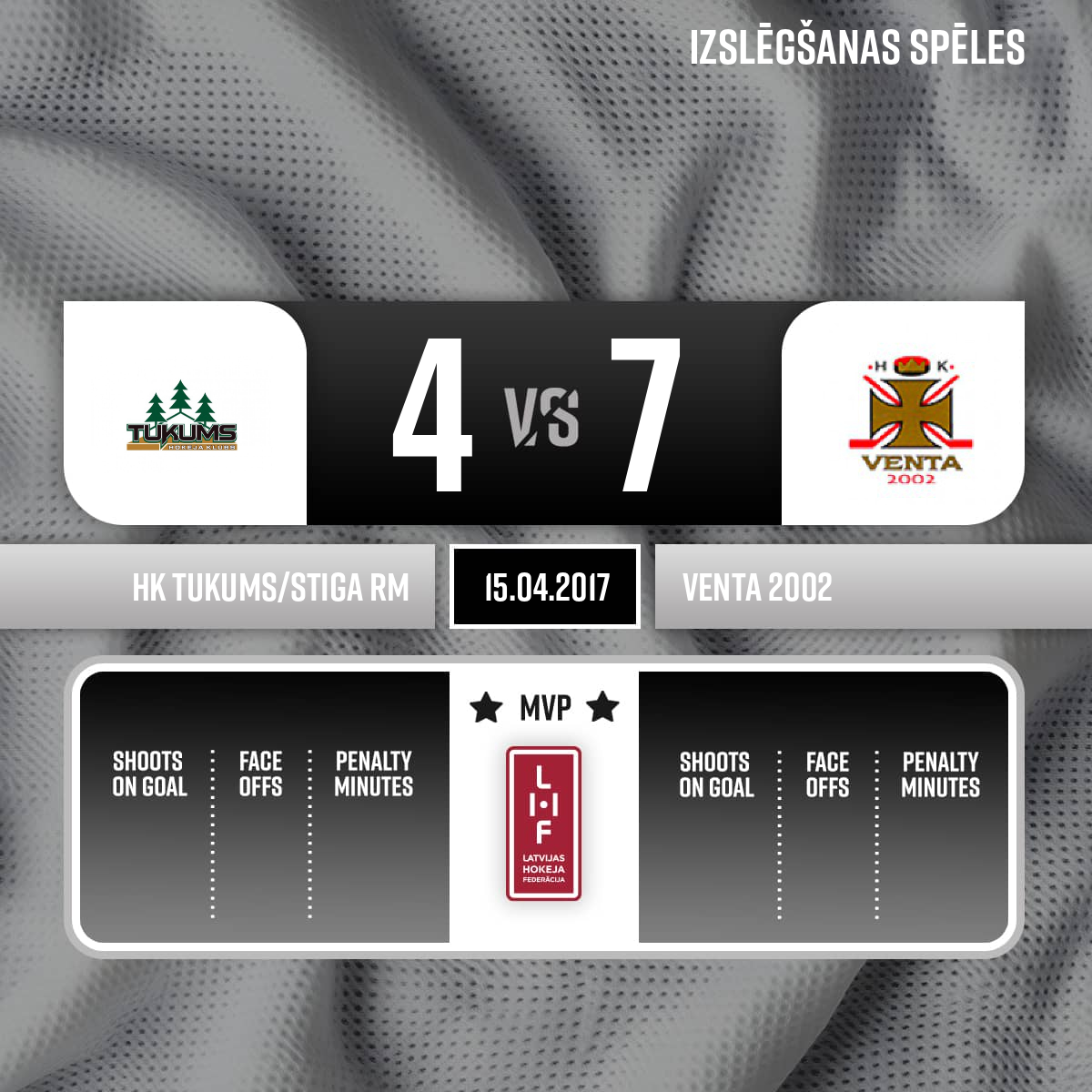 Goal#19 Edgars MARKUNSAssists: #10 Edgars CGOJEVS, #29 Deniss KATERIŅIČS