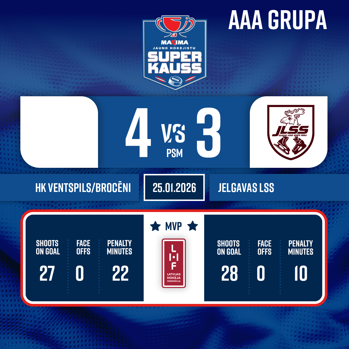 Goal#88 Dominiks KONTANTSAssists: #9 Markuss TĀLBERGS, #98 Miķelis MASLOVSKIS