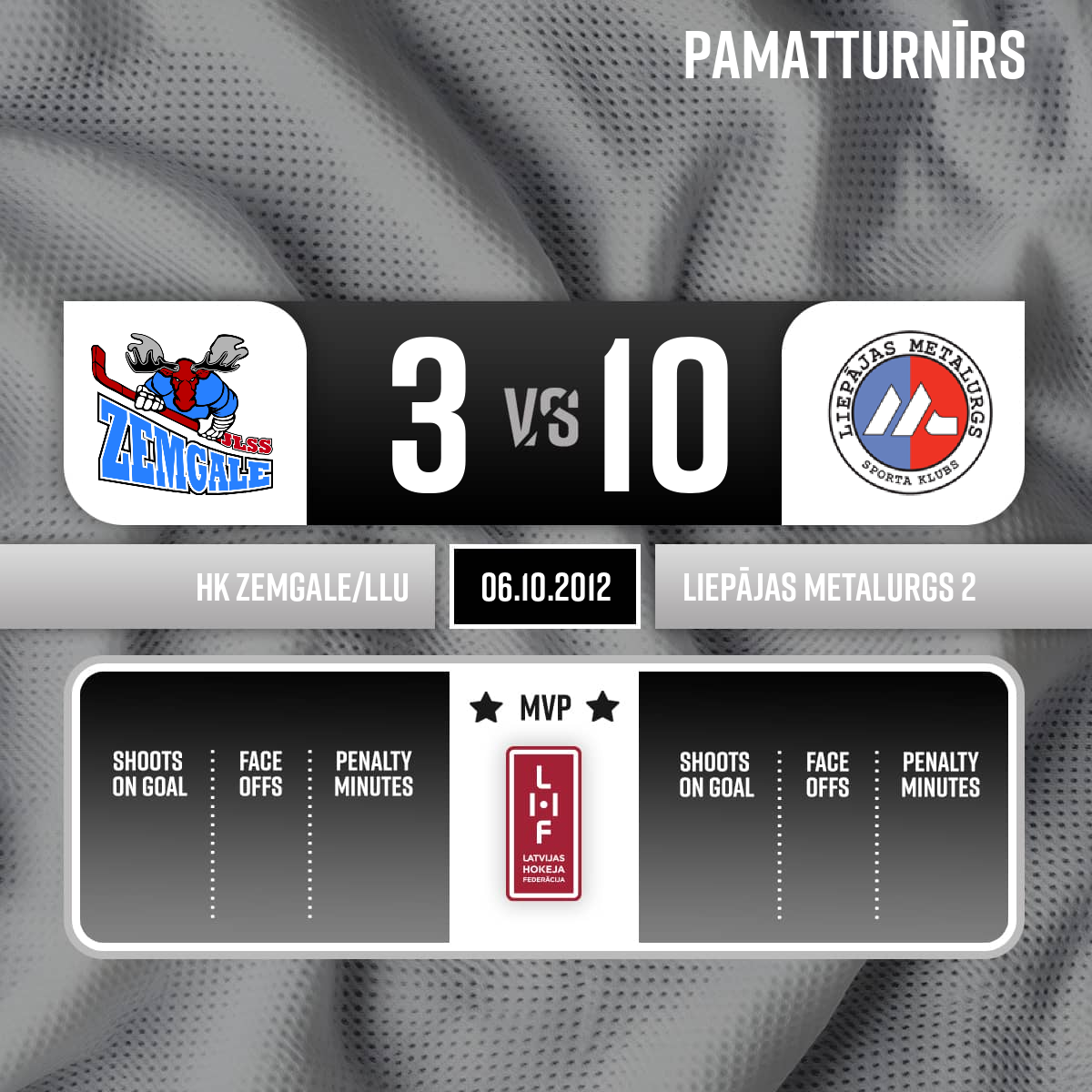 Goal#37 Egils KALNSAssist: #28 Bruno ZABIS - 00:00P1Spēles tiesneši: Galvenais tiesnesis- Andrejs Kudrjašovs , līnitiesneši - Māris Locāns, Aigars Bumbieris