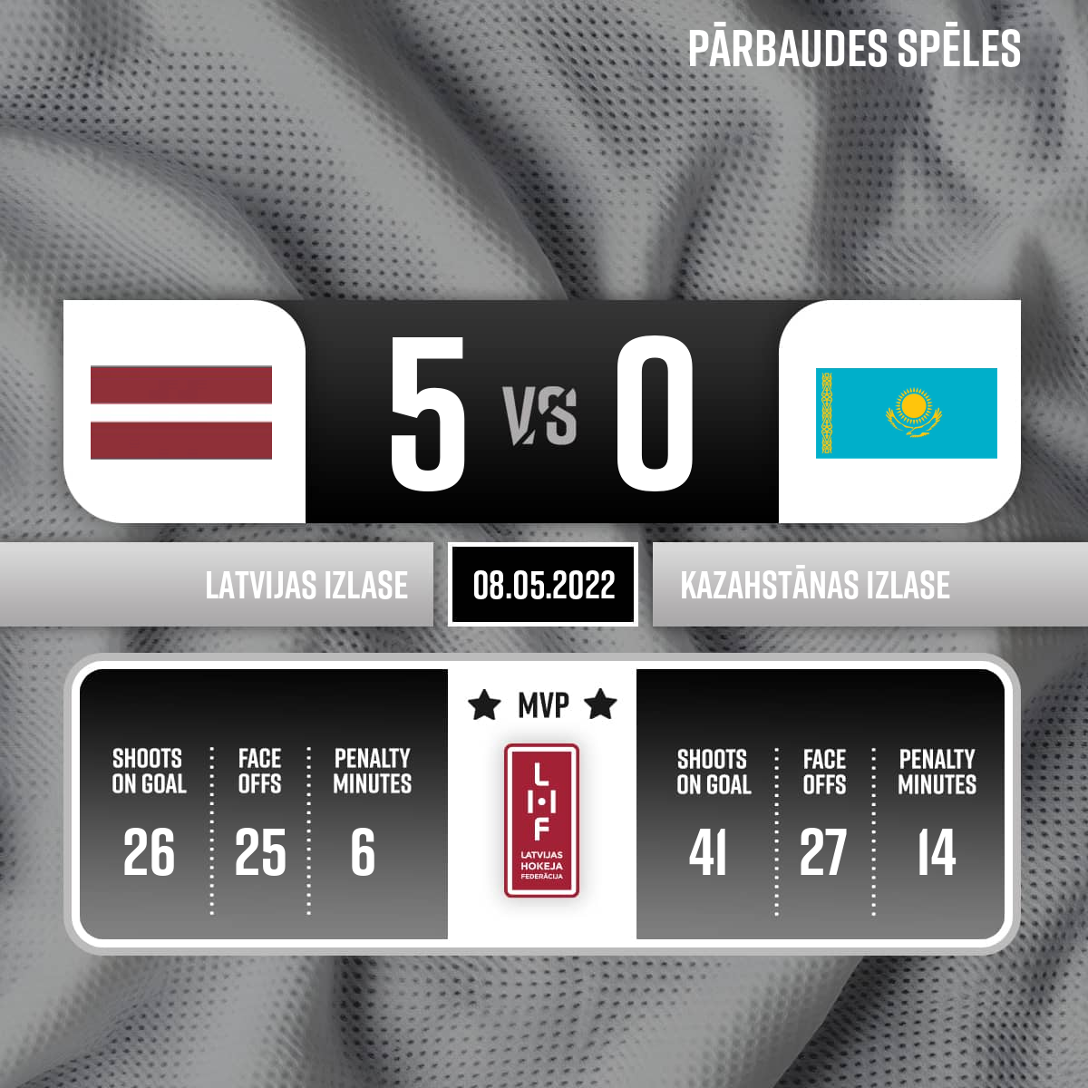 - 60:00P3Labākais spēlētājs Latvijas izlasē- Nr.31 Artūrs Šilovs Labākais spēlētājs Kazahstānas izlasē- Nr.6 Leonid Metalnikov