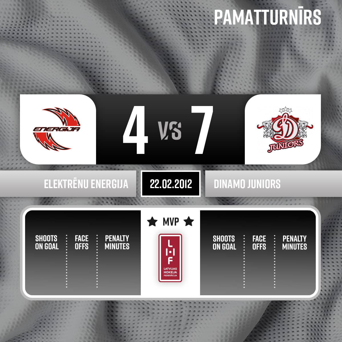 Goal#19 Artūrs ĀBOLIŅŠAssists: #10 Rūdolfs PRŪSIS, #16 Emīls POTĀPOVS - 00:00P1Spēles sākums 16:00