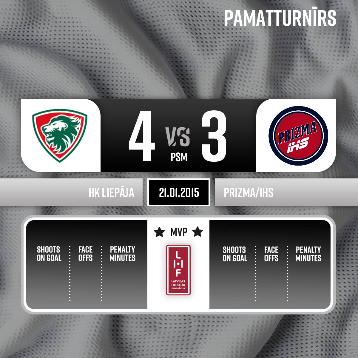 Shorthanded goal#14 Sergejs PISKUNOVSAssists: #51 Vitālijs HVOROSTIŅINS, #23 Mihails BOGDANOVSmazākumā -1 - 49:25P3
