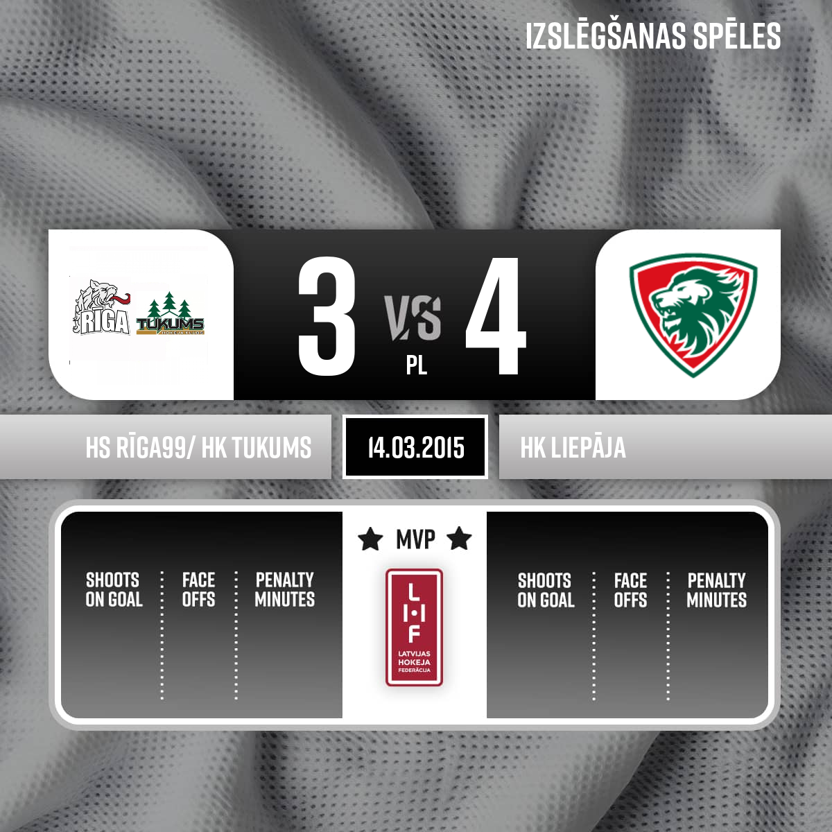 Powerplay goal#15 Māris DIĻEVKAAssists: #10 Bruno ZABIS, #16 Artūrs MICKEVIČSVairākumā +1 - 66:15OT