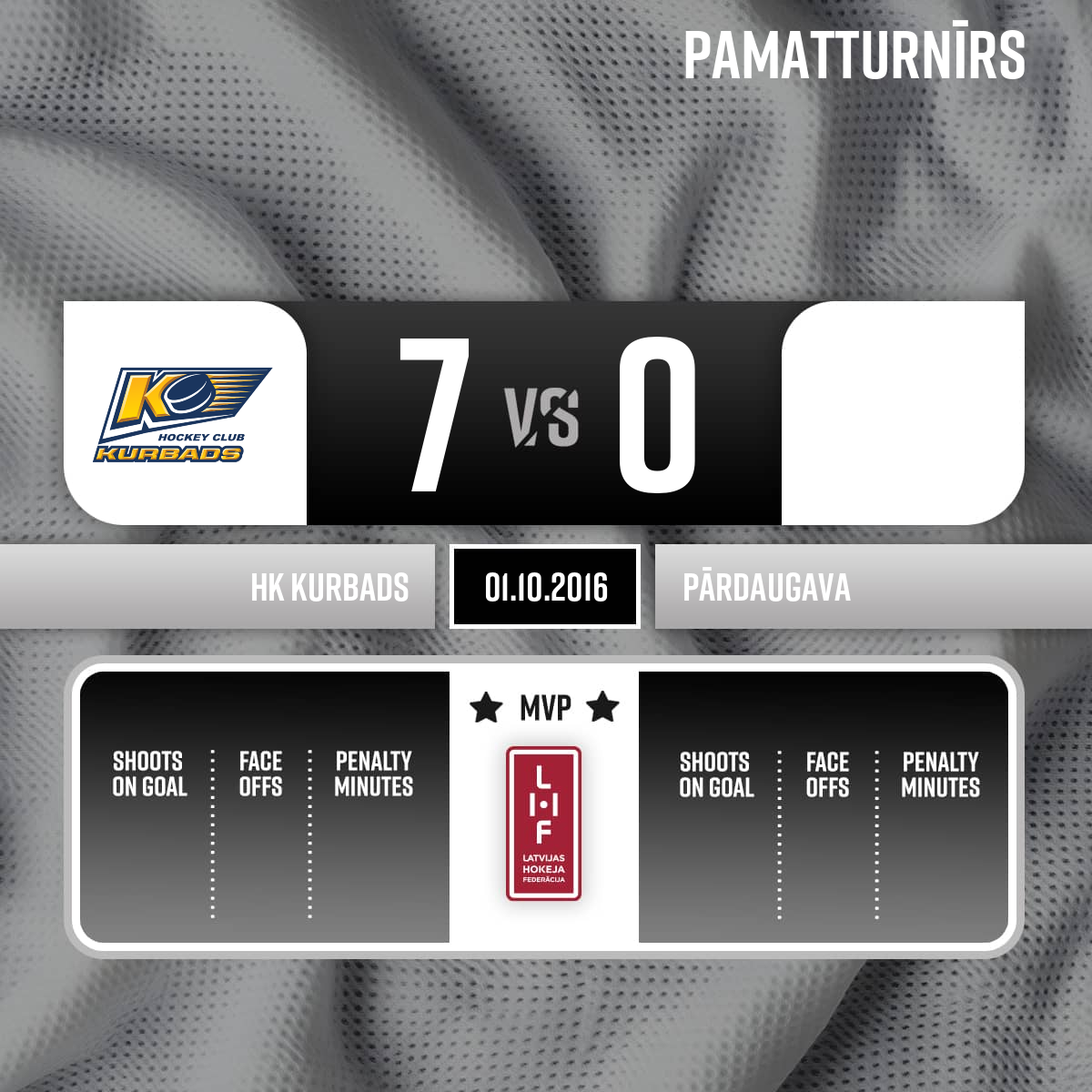 - 60:00P3Spēles labākie spēlētāji; HK Kurbads #12 Toms Bluks HK Pārdaugava #7 Didzis Ruģelis