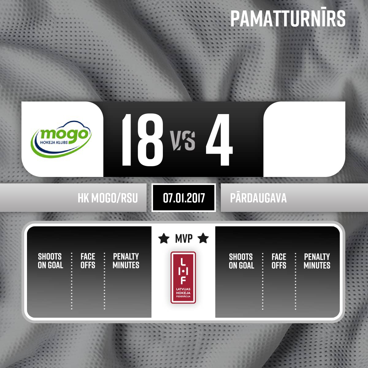 Goal#16 Pauls ZVIRBULISAssists: #17 Elviss ŽELUBOVSKIS, #28 Vladimirs MAMONOVS - 52:10P3Goalkeeper in#33 Toms BROKS