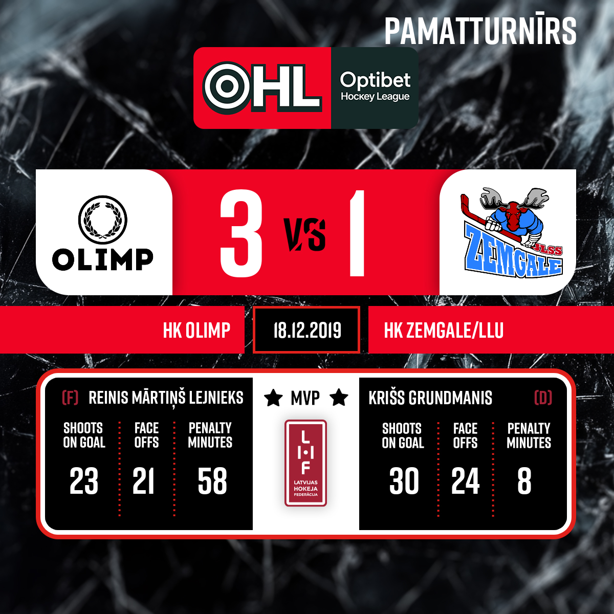 Labākie spēlētāji: HK “Olimp” komandā – Reinis Mārtiņš Lejnieks #93; HK “Zemgale/LLU” komandā – Krišs Grundmanis #4.