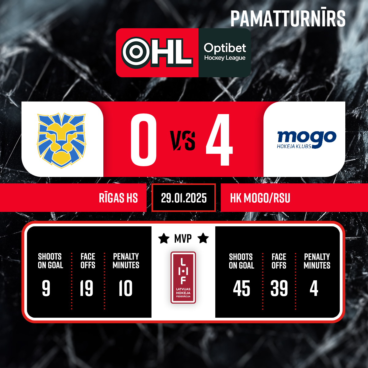 Spēles labākie spēlētāji: RĪGAS HS komandā Nr. 30 KUFTERINS Ivans HK MOGO/RSU komandā Nr. 11 SOTNIEKS Kristaps