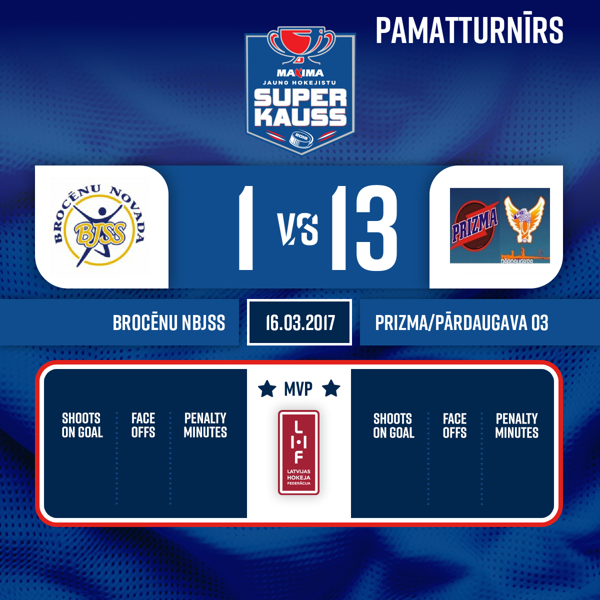 Vārti#19 Matīss BĪRIŅŠPiespēles: #27 Viesturs VELŠS, #8 Artūrs Krišs AVOTIŅŠ - 11:061.P