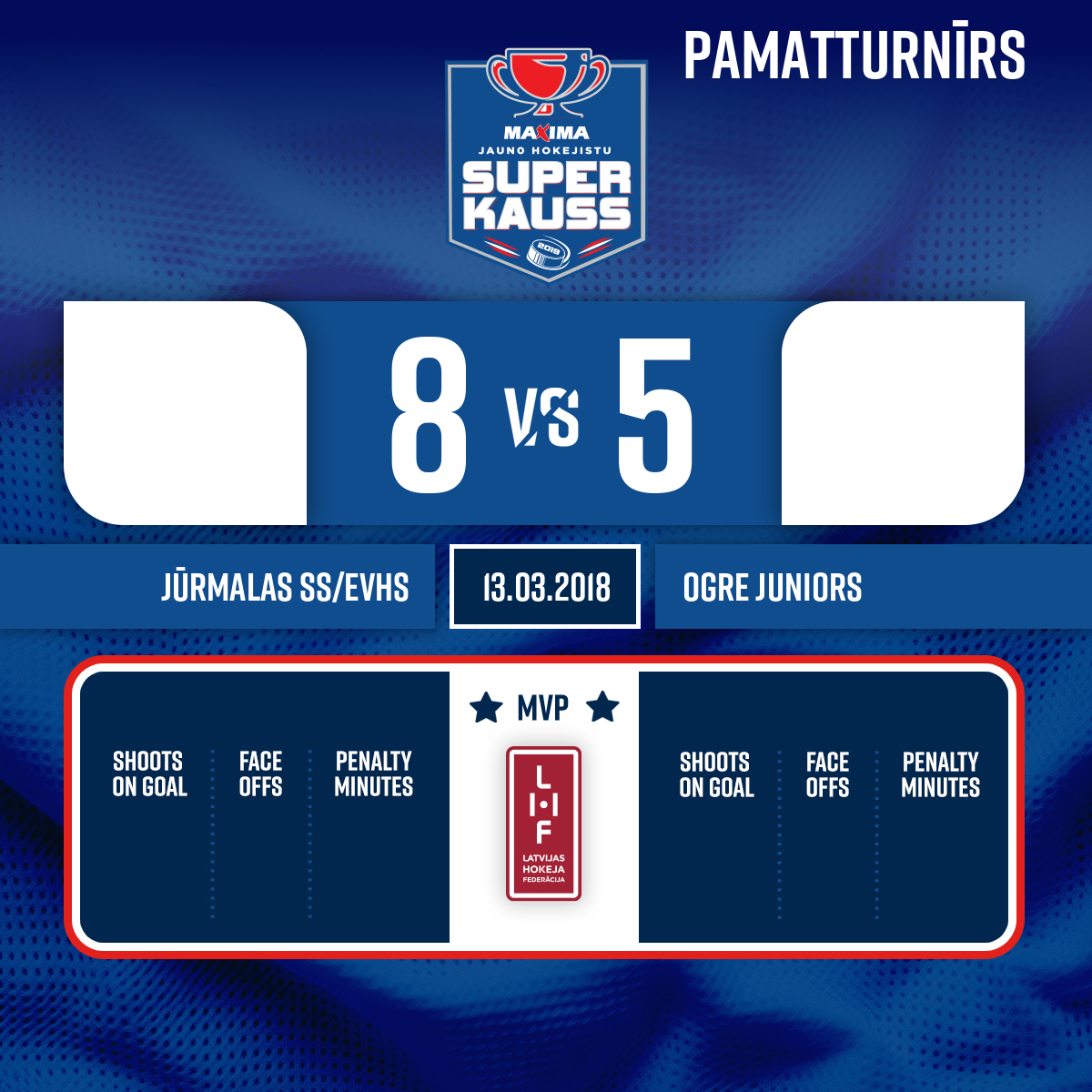 #17 Markuss POTĀPOVSPiespēles: #13 Vladislav KOLOTVIN#11 Jānis GRIGAĻŪNS8:450:36