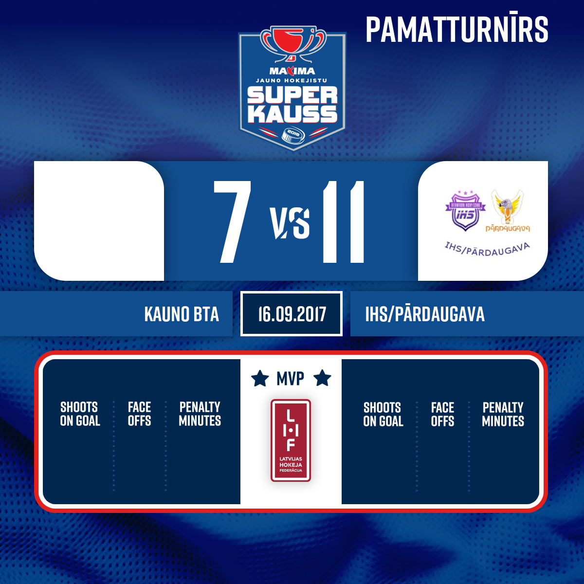 Vārti#22 Daniels STEPANOVSPiespēles: #15 Gusts JEGOROVS, #24 Edgars MUCENIEKS - 07:171.PVārtsargs stājas vārtos#1 Daniel JANKOVSKIJ