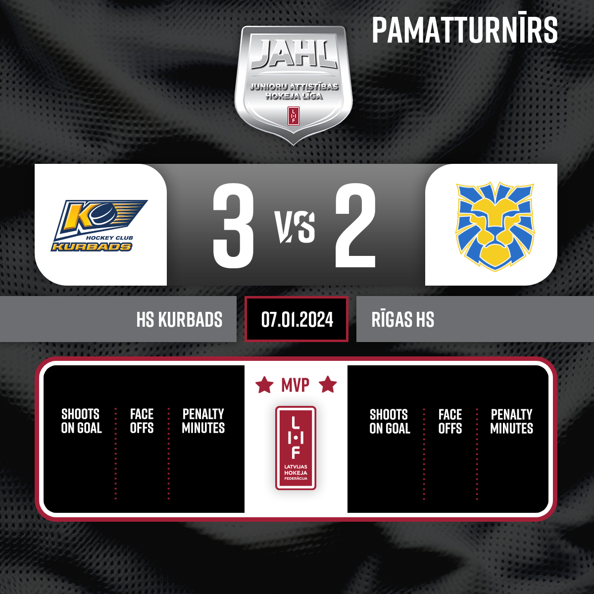Noraidījums - 2 minūtesBloķēšana, #19 Matīss BĪRIŅŠ - 07:391.PAbas komandas spēlē pilnos sastāvos.