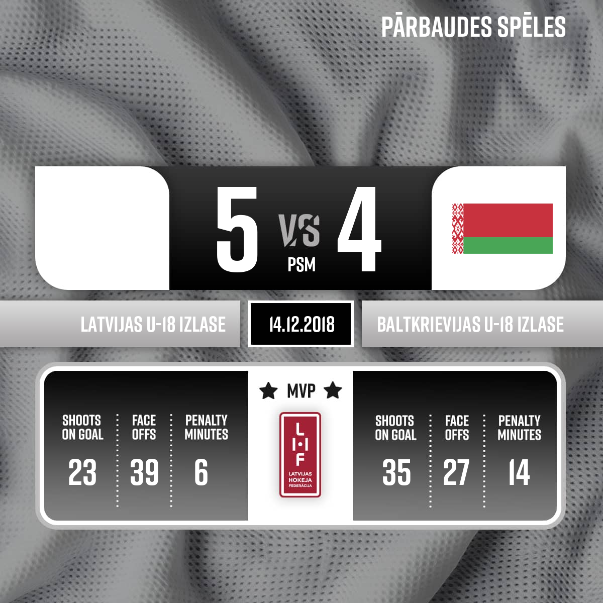 Pusminūtes pārtraukumsBaltkrievijas U-18 izlase - 51:453.PPusminūtes pārtraukumsLatvijas U-18 izlase