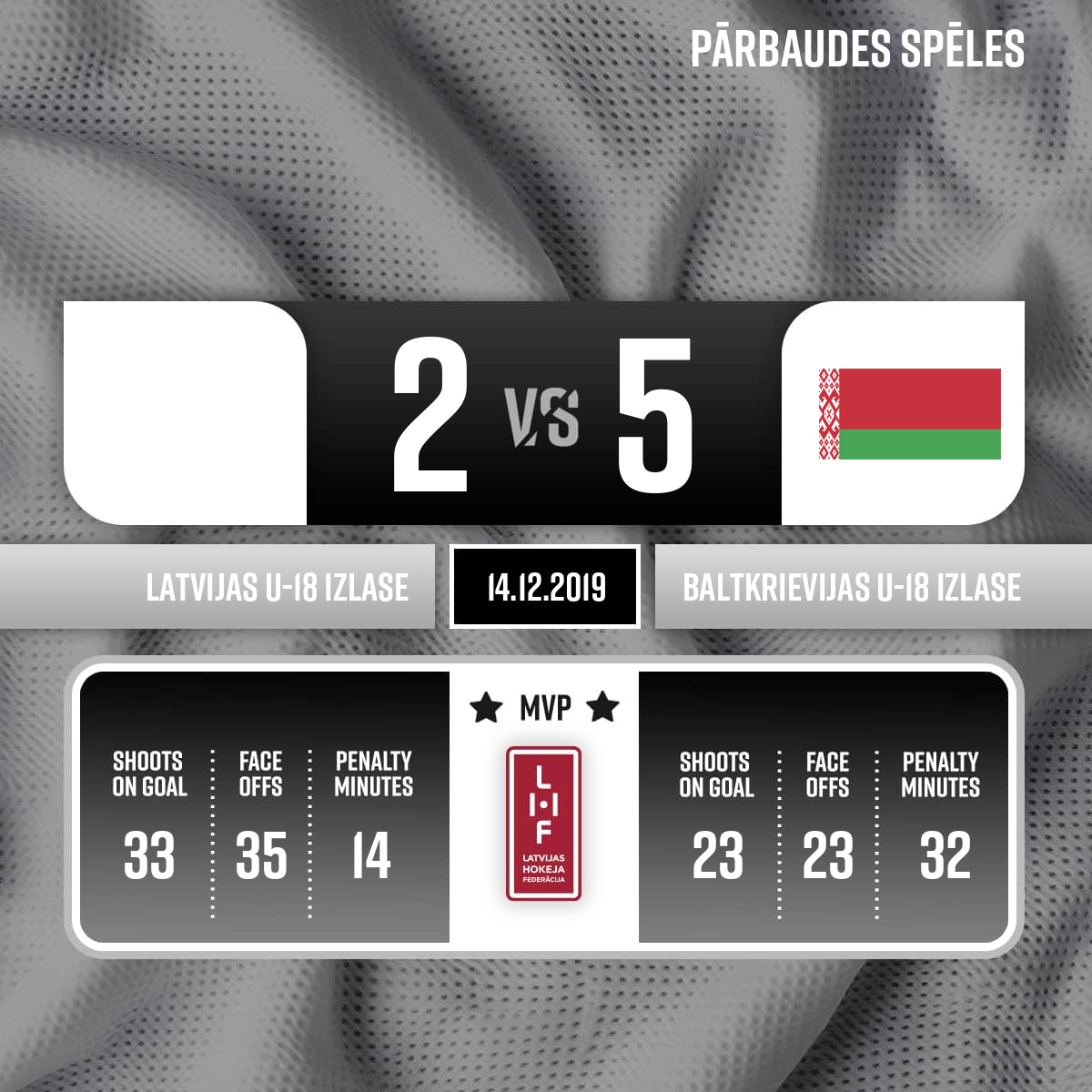 - 60:003.PLabākie spēlētāji/ Best Player of game Latvija U18 – Nr 5 GORŠĀNOVS Daniels Baltkrievija U-18 – Nr 12 PALCHIK Alexander