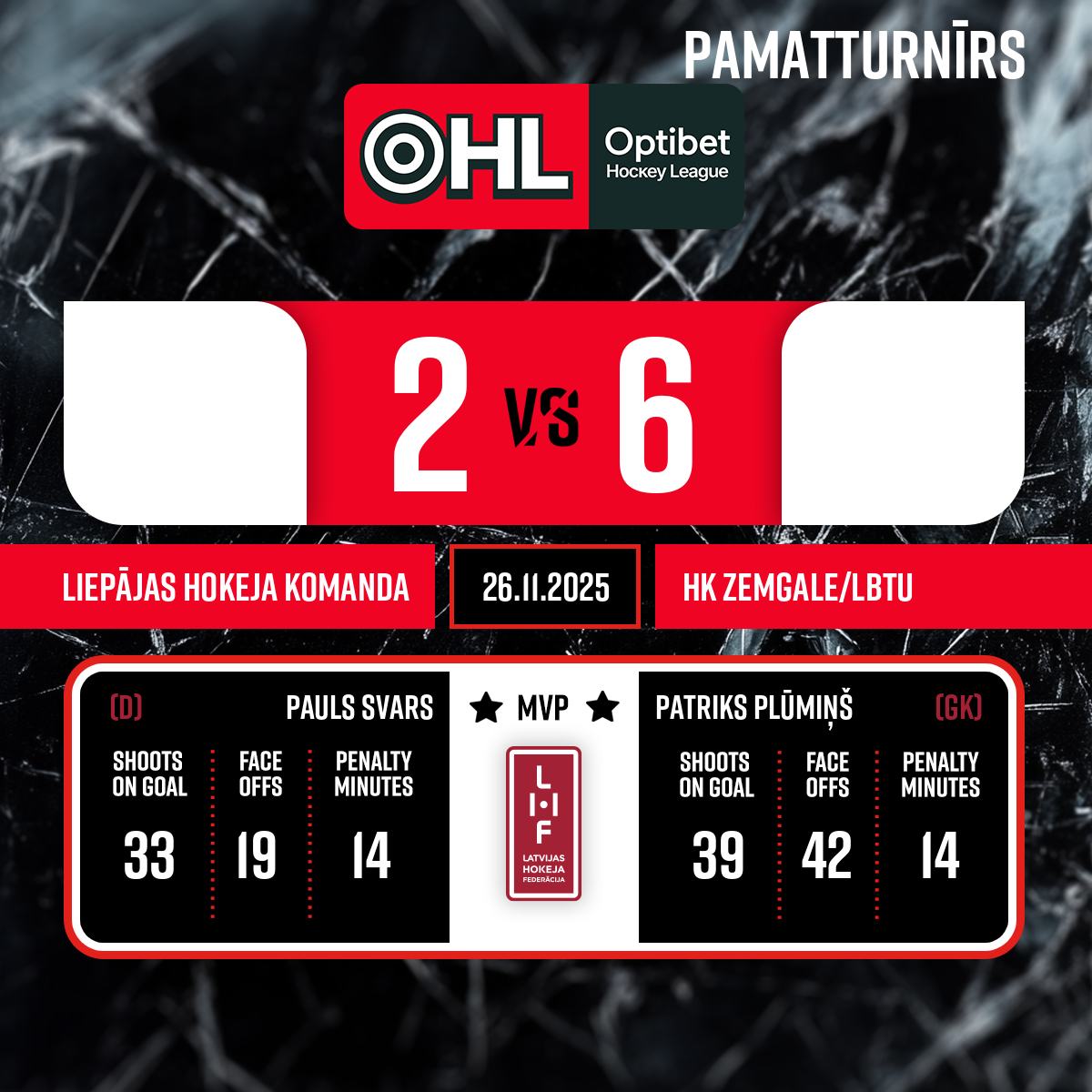Vārti#6 Atte RAJALAPiespēles: #8 Patriks ZABUSOVS, #9 Gatis GRICINSKIS - 28:132.P